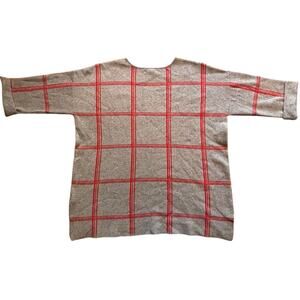 TAHARI Light Gray & Red Plaid 3/4 Cuffed Sleeve Scoop Neck Sweater Size 2X