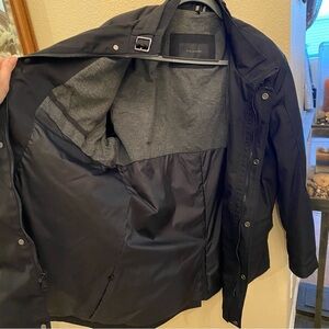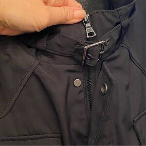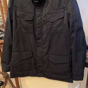 Pre-owned in excellent condition with no rips or stains. Men’s black jacket with zipper and snap button closure. It’s a warm and heavy jacket. 80/20 duckdown inner shell fill. Comes from smoke and pet free home.