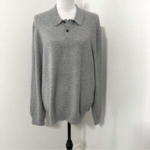 TAHARI Men’s Wool Blend Large Gray Long Sleeve Collar Sweater Waffle Knit NWT