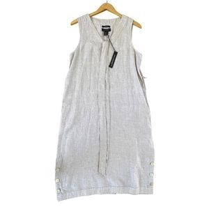 TAHARI NEW 100% Linen Sleeveless Tunic Dress Sz L Belt & Pockets V-Neck Slits