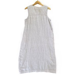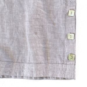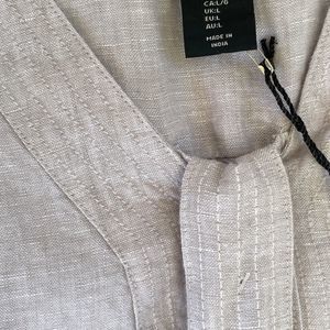 Elevate your casual wardrobe with this stunning Tahari shift tunic dress. Made from 100% linen, the sleeveless dress features a V neckline with button slits and a midi length hemline, making it perfect for summer and spring. The dress comes in beige color and is available in size L, for women who prefer a relaxed fit. 100% linen Features side pockets and belt Accent square buttons at hem sides Measurements (All measurements are approximate and may vary slightly from the listed information): Armpit to armpit 21" Waist circumference 42" Shoulder length 3" Front length 44" (taken from base of neck to hem), To ensure a perfect fit, please compare the measurements above to an item you already own that fits you well