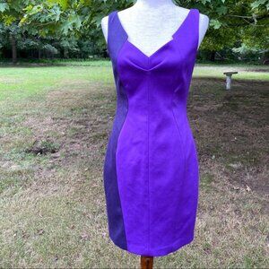 TAHARI NEW DRESS SHEATH V-NECK PURPLE COLOR BLOCK SLEEVELESS Size 4 NWT