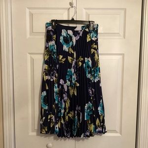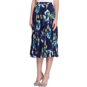 TAHARI Navy Blue Floral Pleated Midi Skirt