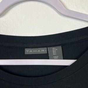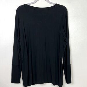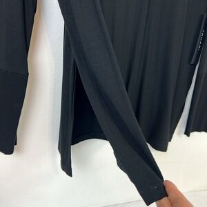 TAHARI New Women’s Large Stretchy Long Sleeve Side Silts Black Top