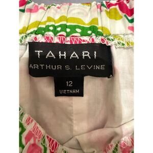 TAHARI Off the Shoulder Mini Dress Womens 12 Lined Beachy Boho Green Pink Preppy