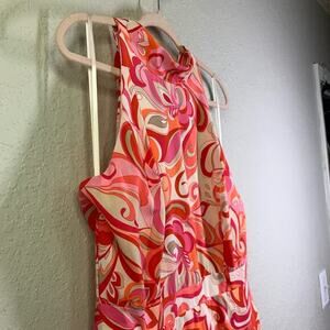 TAHARI Pink Floral Paisley Print Halter Sleeveless Maxi Dress Size 14 - NWT