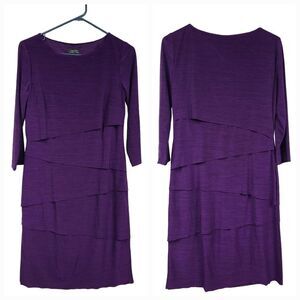 TAHARI ASL Purple Plum Tiered Sheath Dress Matte Jersey MOTB Wedding Party Sz 8