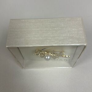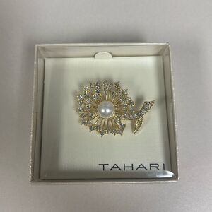 TAHARI Rare Gold Tone Rhinestones Faux Pearl Floral Pin Brooch