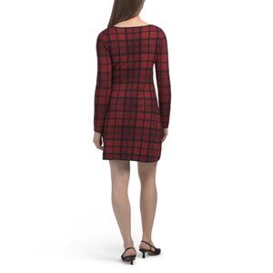TAHARI Red Long Sleeve Plaid Mini Dress With Velvet Faux Pearl Hair Bow