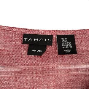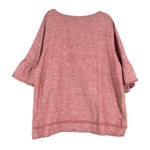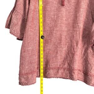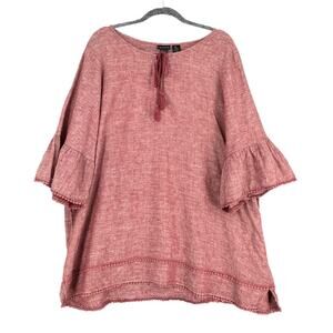 TAHARI Reddish Pink Linen Tassel Pom Pom Bell Sleeve Boho Tunic Blouse 2X