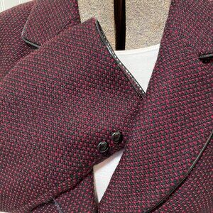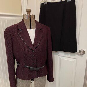 TAHARI SKIRT SUIT RED AND BLACK WOOL BLEND JACKET BLACK SKIRT SIZE 14