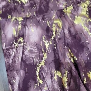 NWT TAHARI SPORT - Burgundy Gold Marble Leggings with Pockets Size 1X