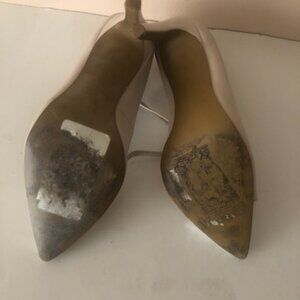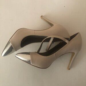 TAHARI Sabina nude and silver tip heels shoes 7.5
