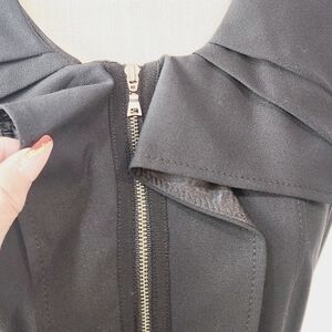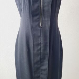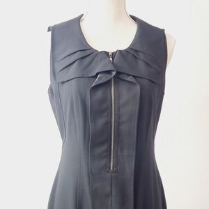 TAHARI Solid Black Sleeveless Ruffle Round Neck Front Zip Sheath Dress Size: 6