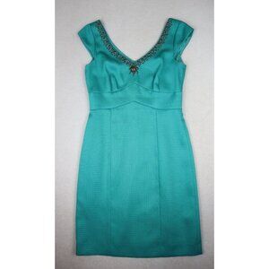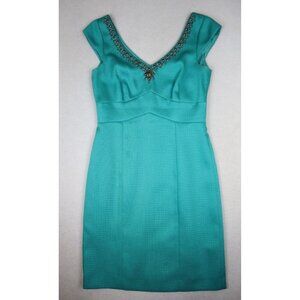 TAHARI - WOMEN'S TEAL GREEN SHEATH DRESS - BEADED NECKLINE - SIZE 4