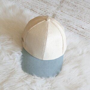 TAHARI WOVEN STRAW BASEBALL CAP LIGHT BLUE BRIM HAT COTTON MINIMALIST NEUTRAL