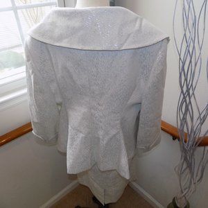 Tahari White & Silver Abstract Print Plus Size Skirt Suit Plus Size 18W