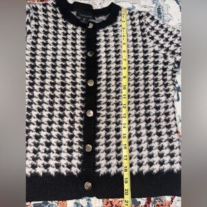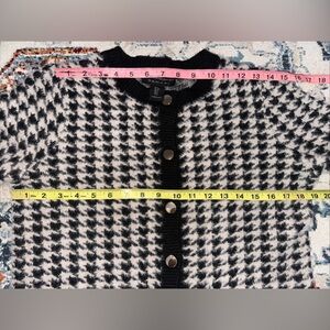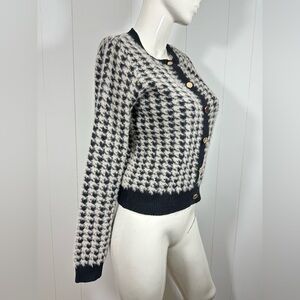 TAHARI Women Long Sleeve Metal Button Cardigan SZ S Beige Black Houndstooth