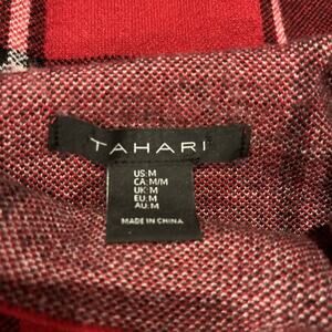TAHARI Women Long Sleeve Mock Neck Sweater Size M Red/Black/White Plaid