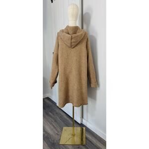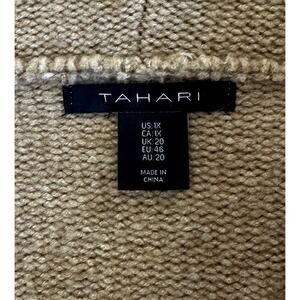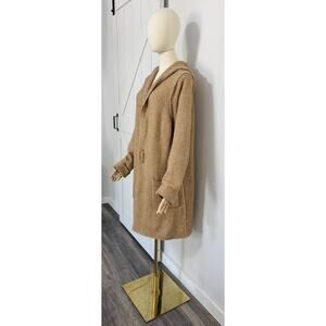 TAHARI Women Size 1X Wool Blend Hooded Long Cardigan Sweater Beige Tan