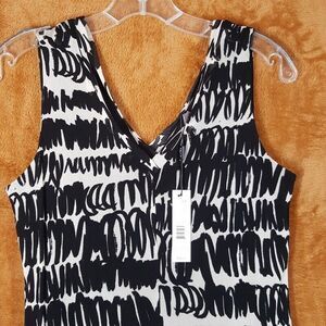 TAHARI Womens Dress Small Black White Fit Flare A-Line Sundress Midi Stretch Condition: New with tag. Measurements included in photos.