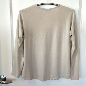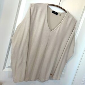 TAHARI | Women’s Light Beige V-Neck Long Sleeve Blouse Size Small