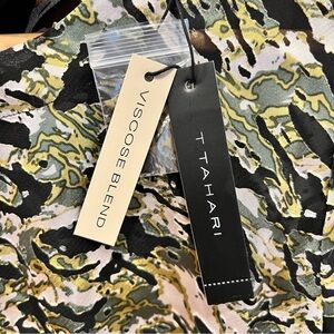 TAHARI Women's Top | Olive Green | Abstract Print Short Sleeve | NWT Size SM