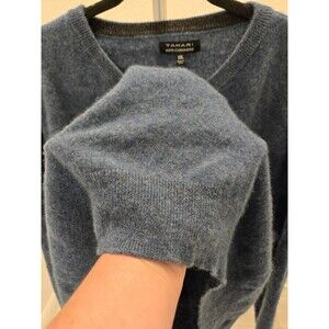 TAHARI Women's XXL 100% Cashmere V-Neck Sweater Luxurious Denim Blue Pullover