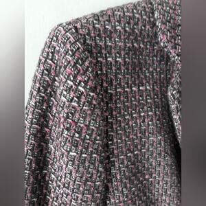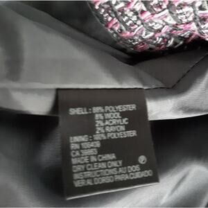 Tweed button front blazer style jacket with front pockets. Lined in satin. Heavy warm blazer