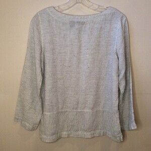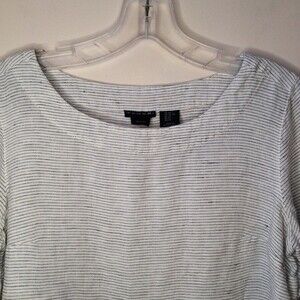 TAHARI XS WHITE LINEN NAUTICAL SKINNY STRIPE TOP