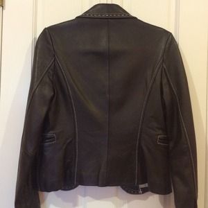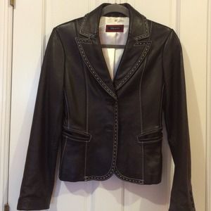 TAHARI black leather jacket w/t white stitching