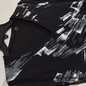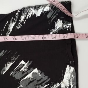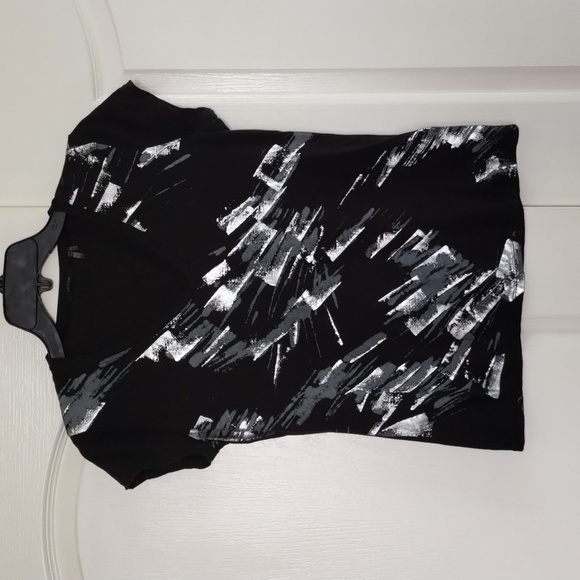 TAHARI black with silver metallic print size small fitted short sleeve tee vneck