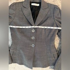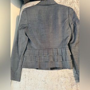 TAHARI blazer jacket women’s size 2 petite gray plaid peplum flare fall jacket