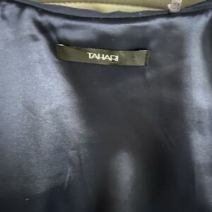 TAHARI blue asymmetrical full-zip jacket side zip pockets notch lapel Small