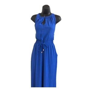 TAHARI blue keyhole neck jersey sleeveless smocked waist belted jumpsuit size 6 new