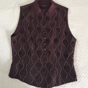 TAHARI vintage Burgundy 100% silk beaded vest , 4