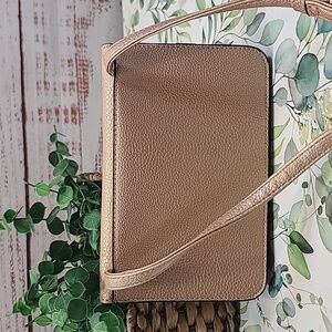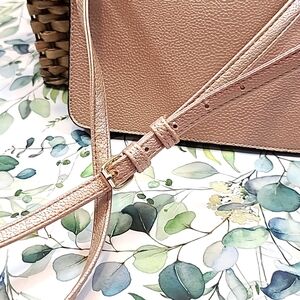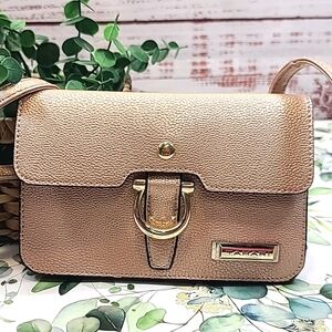 Metallic gold man made material with Chunky gold hardware. Pre-owned in like new condition.