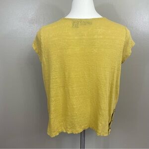 TAHARI women’s size Large 100% LINEN Short Sleeve Top mustard yellow beach