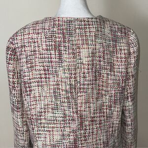 TAHARI x ASL 14 Pink Green Raw Fringe Hem Trim Four Pocket Tweed Blazer