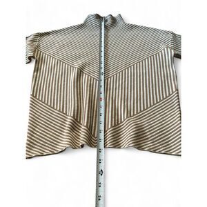 TAHARI Brown White Stripe Women’s Mock Neck Sweater S Stretchy Knit Pull On