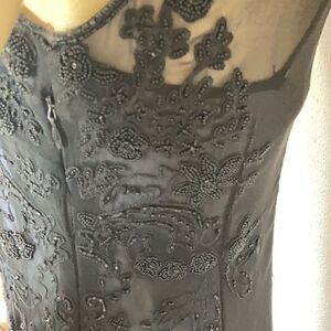 TAHARI Dress sheer sleeveless beaded silk black with grey slip two piece size 2