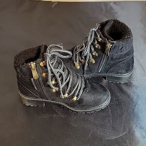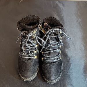 TAHARI ROUND TOE ZIP CLOSURE LACE UP SLIP-ON ANKLE TODDELER GIRL BOOT SIZE 11 COLOR BLACK WITH FAUX LEATHER FUR THIS ITEMS IS PRE-OWNED EXCELLENT CONDITION WITH ONLY LIGHT SIGNS OF WEAR IF ANY CHECK THE PICTURES