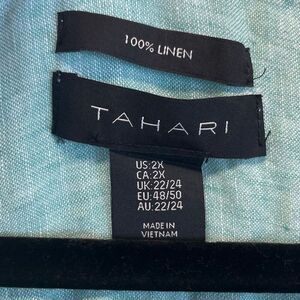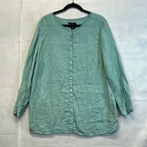 TAHARI Women’s Linen Button Front Tunic Top 2X Teal Green Long Sleeve Blouse