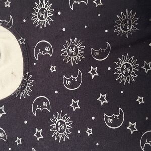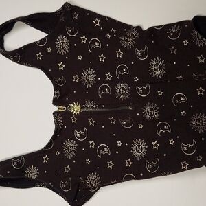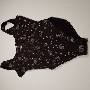 CUTE TAHITI SUN & MOON BLACK & GOLD SWIMSUIT SIZE LARGE. See photos for measurements. No Size Tag. Has a front gold zipper with a sun face. Great for summer by the pool or at the beach.
