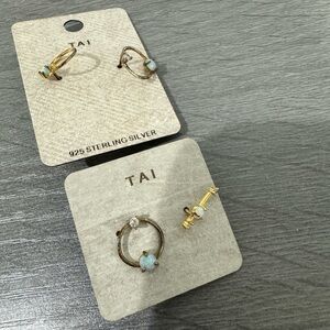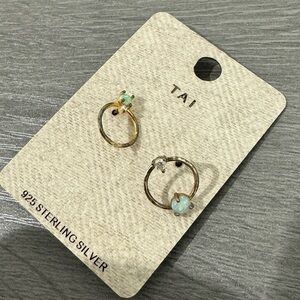NWT - TAI 2 Set Earrings - Gold Bar CZ Tips & Gold Vermeil Open Circle Earrings