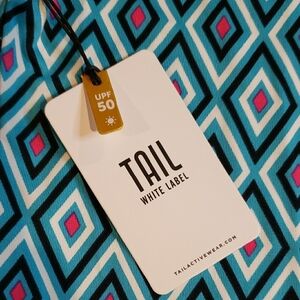 TAIL Geometric Patterned Top in Blue Pink Black Zip Golf Pullover