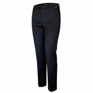 The TAIL Activewear Classic Black Golf Pants for women in size 2 feature a mid-rise, zip and hook & eye closure, and straight/slight taper leg style. Made of lightweight and stretchy polyester spandex material, these pants are perfect for casual occasions in summer, fall, and spring. With UPF50 protection, easy care instructions, and pockets for convenience, these pants combine comfort and style for the active woman on the golf course or in everyday wear. The classic black solid color and logo accents add a touch of sophistication to these versatile and practical pants.