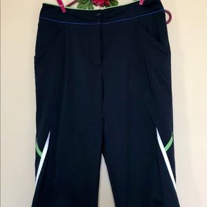 Look no further, you have just found the perfect pair of capris. These TAIL TECH size 6 capris are made of light wait 95% polyester and 5% lycra. They will keep you cool on the golf course or whatever activity you are doing. Two front pockets and double snap and inner waistband button with a 5 1/2" front zipper. One back pocket to fit your phone.