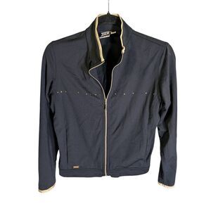 TAIL Tech Performance Golf Tennis Jacket Black Gold Sz L Rhinestone Zip Women's