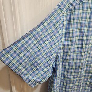 TAILORBYRD Collection Short Sleeve Blue Green Plaid Button Down Shirt Size Large.